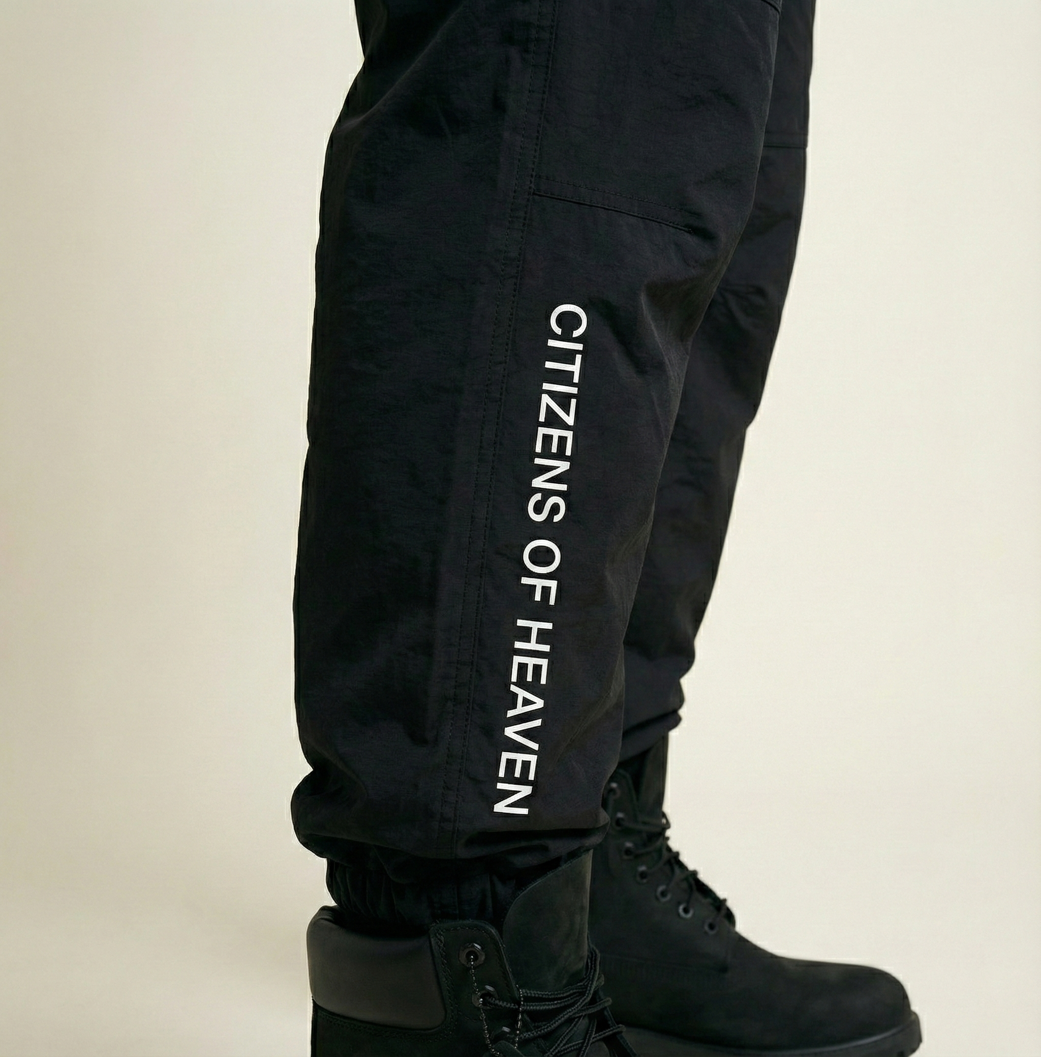 The Design Crafted with a focus on silhouette and movement, the Wayfarer features articulated knee panels and an adjustable drawstring hem for a customizable fit. The mid-weight technical fabric provides structure without sacrificing comfort, making it a cornerstone of the "Citizens of Heaven" wardrobe.