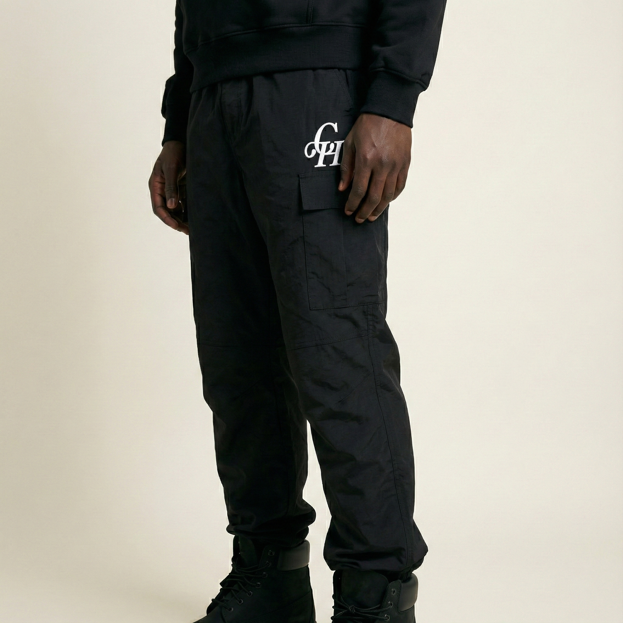 Utility Storage: Dual-flap cargo pockets positioned for a streamlined profile inspired by benchmarks like John Elliott and Kith.